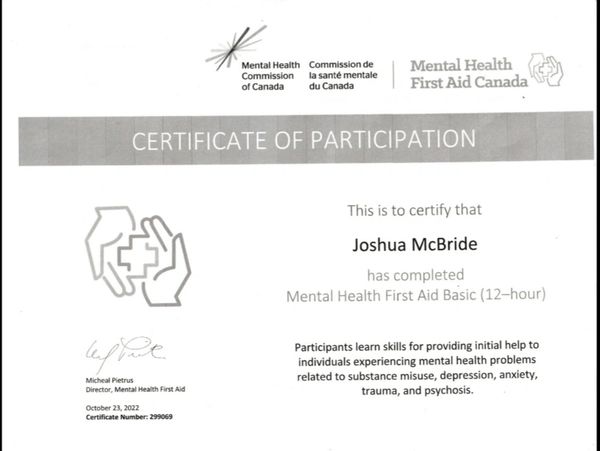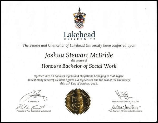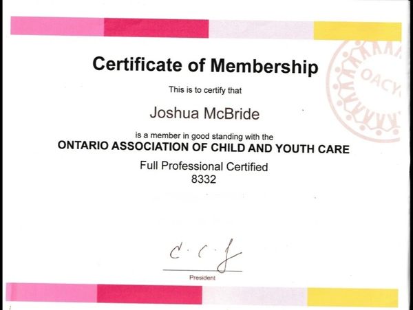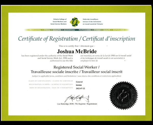 Hello, my name is Joshua McBride. I am a Registered Social Worker and Professional Certified Child and Youth Care Practitioner, entitled to practice in Ontario, Canada.